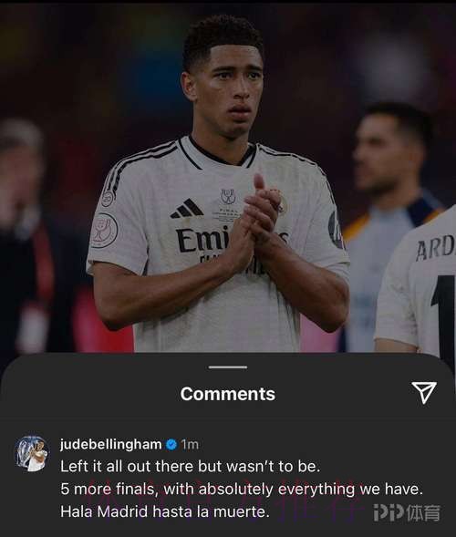贝林厄姆的五场“决赛”是一种怎样的信念 当裘德·贝林厄姆在社交媒体写下“还有5场决赛 我们将倾尽所有”时,他说的并不仅仅是接下来的五场比赛,而是一种被无数球迷反复谈起却很少真正做到的职业信仰。这